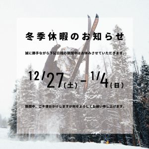 誠に勝手ながら、下記の期間は冬季休業とさせていただきます。